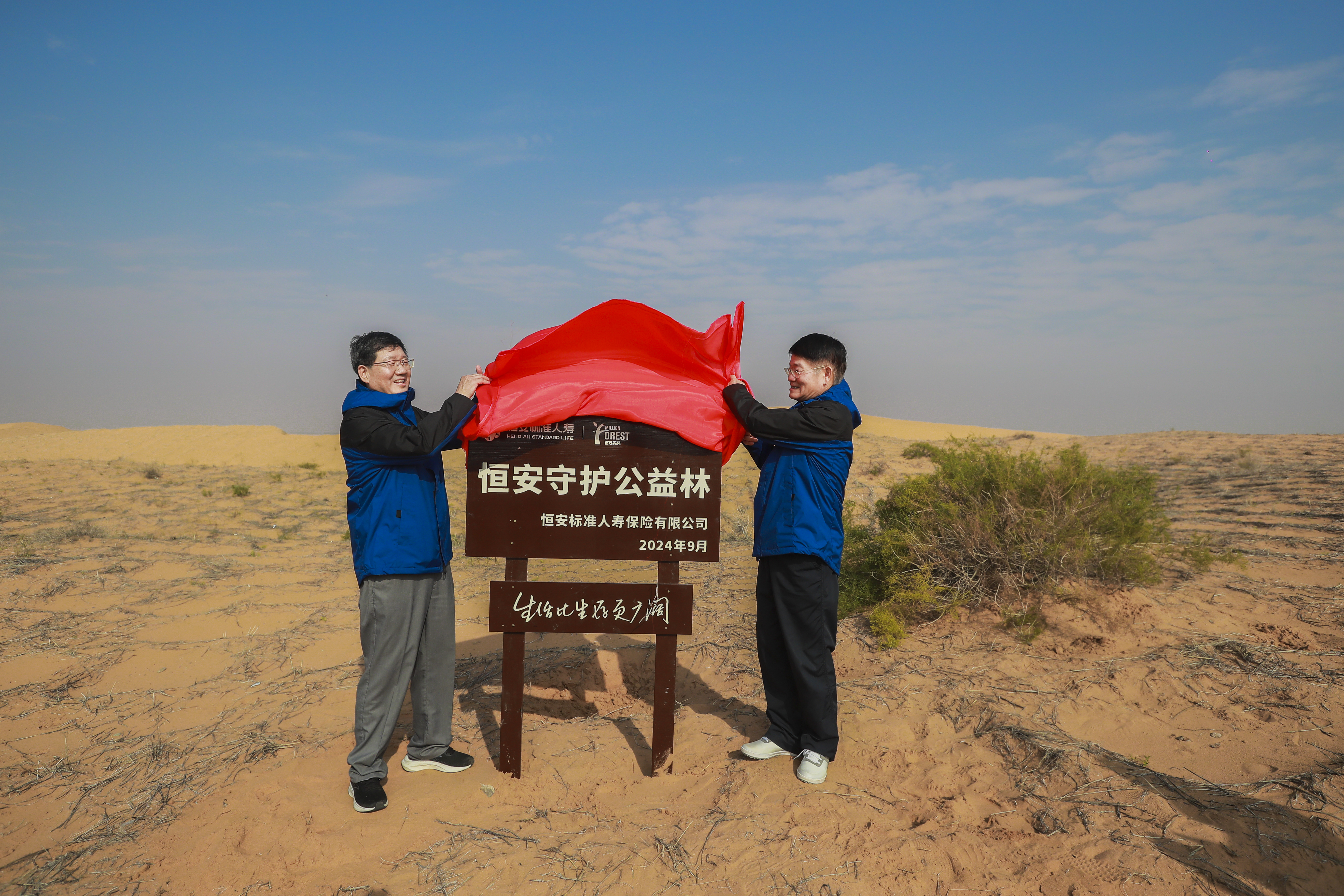 近日,“恒安守護 向善而行”恒安標準人壽公益林揭牌儀式在內蒙古自治區阿拉善盟左旗騰格里沙漠舉行。恒安標準人壽副總經(jīng)理賈孝林、中國綠化基金會(huì )副主席兼秘書(shū)長(cháng)陳蓬出席儀式并共同揭牌。