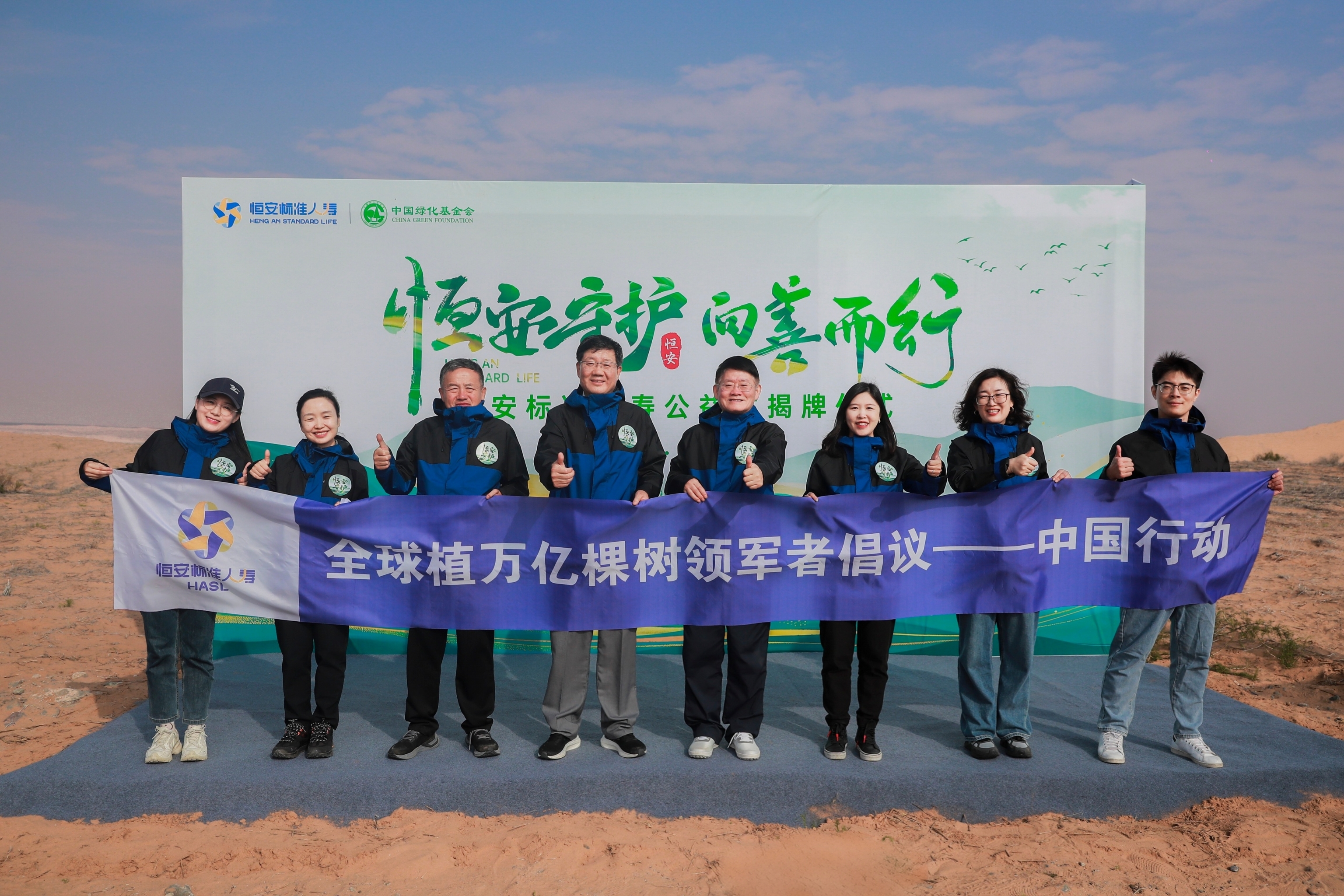 全球植萬(wàn)億棵樹(shù)領(lǐng)軍者倡議由世界經(jīng)濟論壇于2020年發(fā)起,提出在2030年前“保護、恢復和種植一萬(wàn)億棵樹(shù)”的目標。2022年,中國綠化基金會(huì )攜手世界經(jīng)濟論壇,共同推動(dòng)“全球植萬(wàn)億棵樹(shù)領(lǐng)軍者倡議”在中國的落地工作。首批加入“全球植萬(wàn)億棵樹(shù)領(lǐng)軍者倡議-中國行動(dòng)”的企業(yè)有伊利集團、螞蟻集團、赫基集團、恒安標準人壽保險有限公司、貝殼控股有限公司、蒙牛集團等10余家。自2023年開(kāi)始,恒安標準人壽陸續在騰格里沙漠植樹(shù),三年間將共計種植60000棵。