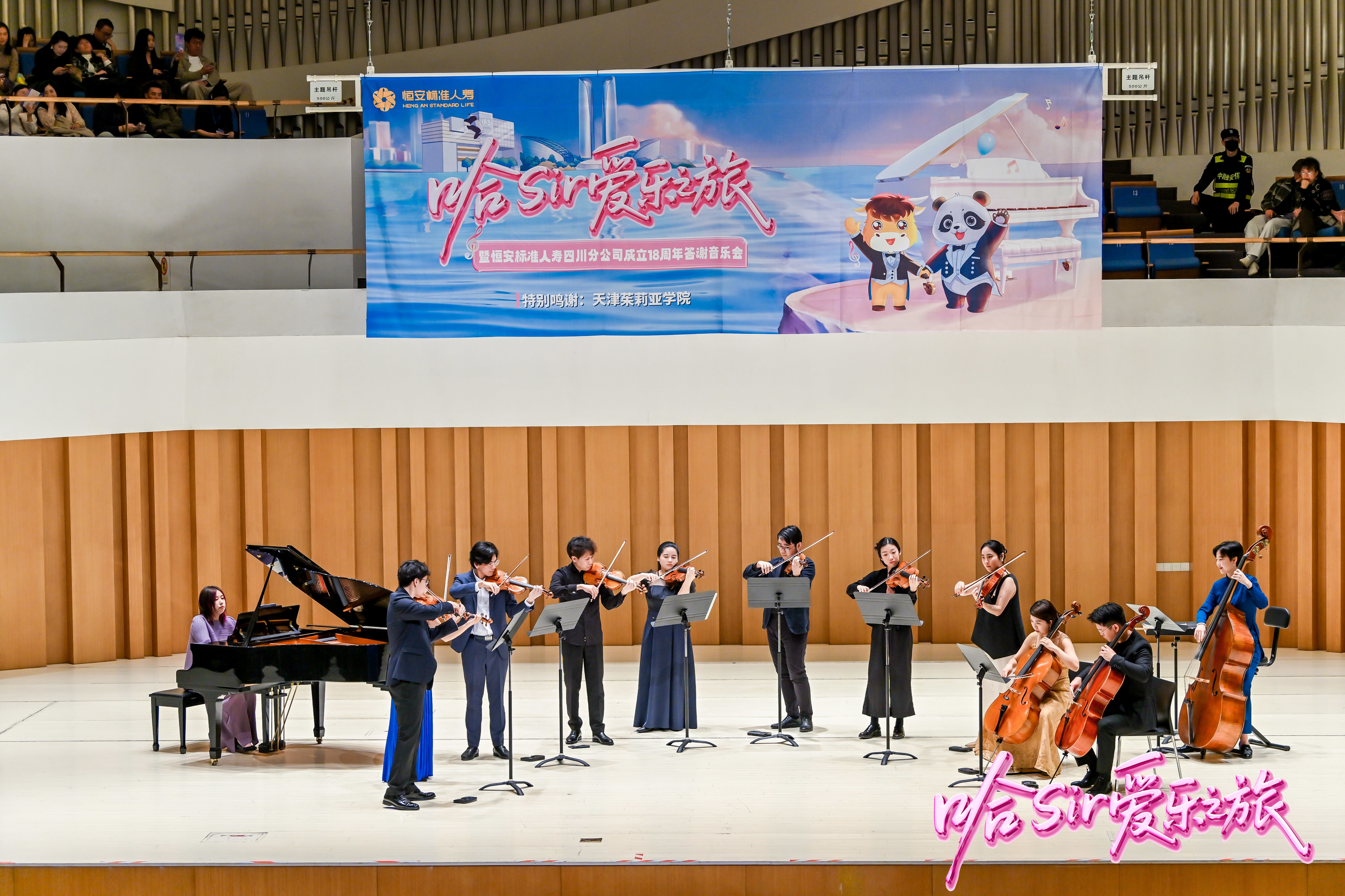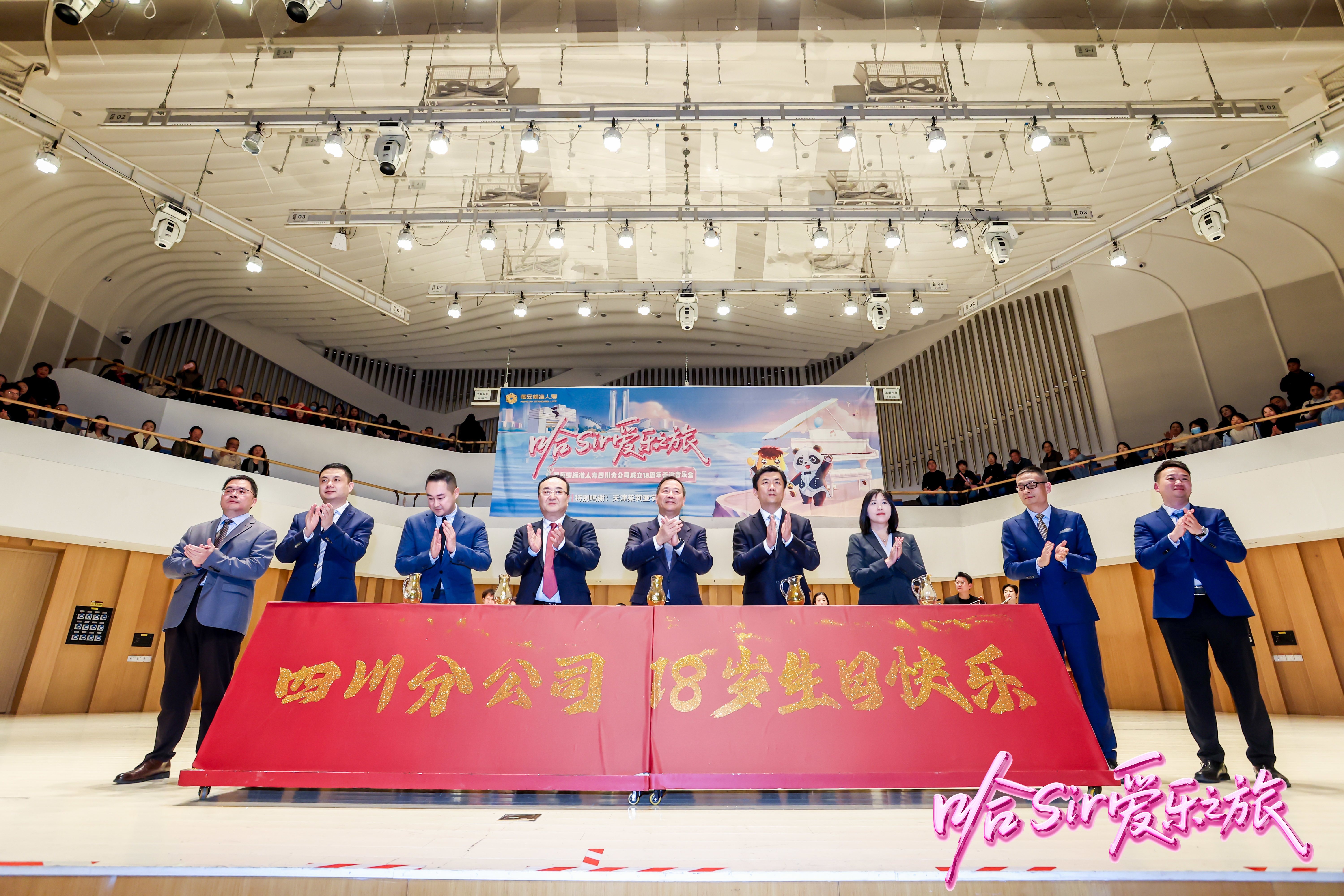 11月23日,哈Sir愛(ài)樂(lè )之旅暨恒安標準人壽四川分公司成立18周年答謝音樂(lè )會(huì )在成都盛大舉辦。恒安標準人壽董事長(cháng)鄭藝,副總經(jīng)理、四川分公司總經(jīng)理周卿,副總經(jīng)理朱路,綜合辦公室主任俞潔,天津茱莉亞學(xué)院教育發(fā)展基金會(huì )秘書(shū)長(cháng)馬文杰,以及四川分公司特邀嘉賓、合作伙伴、客戶(hù)代表及公司內外勤員工800余人齊聚一堂,共同見(jiàn)證這一難忘時(shí)刻。
