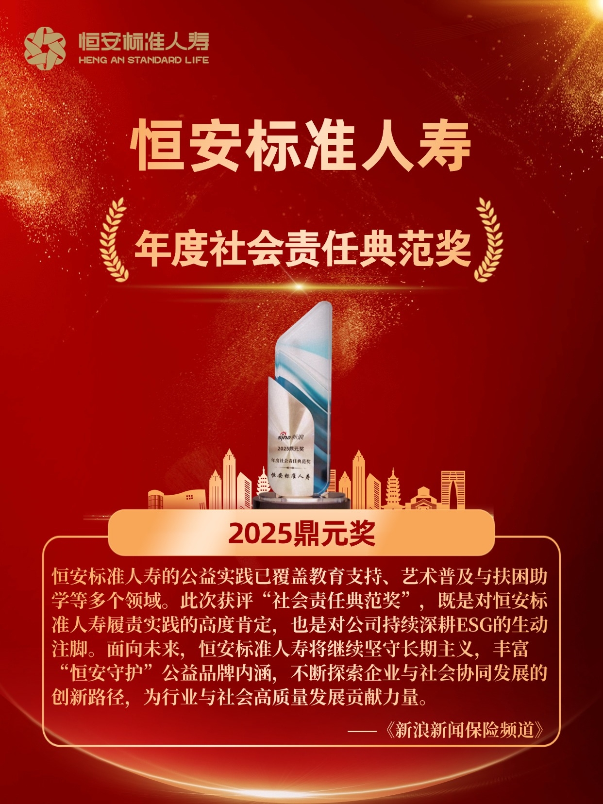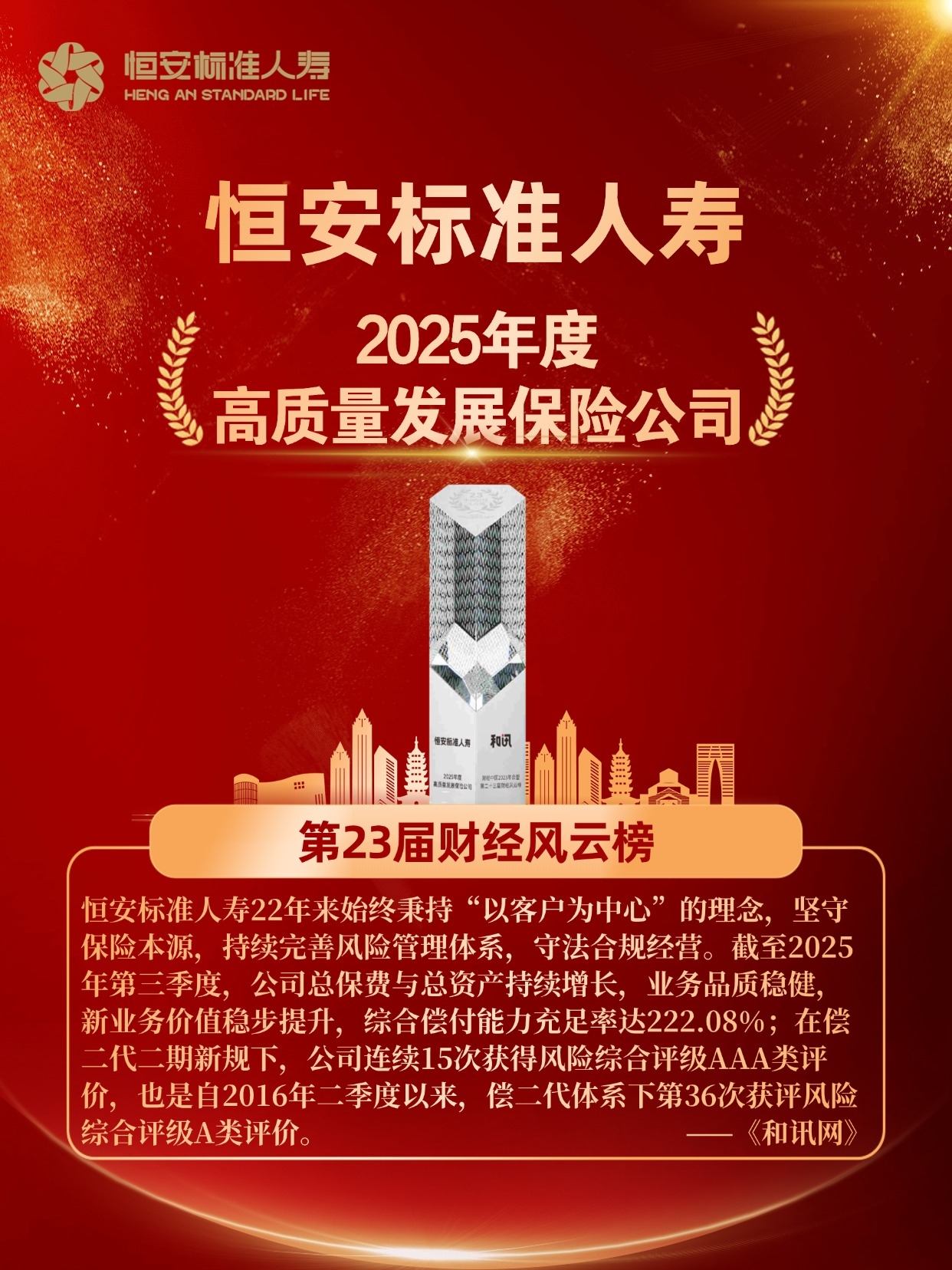 一系列榮譽(yù)不僅體現了業(yè)界對恒安標準人壽綜合實(shí)力的高度認可,也全面展現了公司在人才培養、穩健經(jīng)營(yíng)、產(chǎn)品創(chuàng )新和社會(huì )責任踐行等方面的卓越成效。